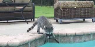 Raccoon’s Thinking About Getting In The Pool When The Dog Shows...