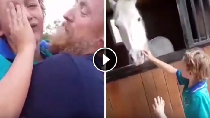 Due to his unwavering motivation, Sabastian’s hard work came to fruition when his Mom surprised him with a very special gift that she had secretly delivered while he was in school. The 7-year-old was rendered speechless when he walked into his family’s barn on Tuesday to find Tom Boy, a Welsh mountain pony… it was a moment he’d dreamt of his whole life.