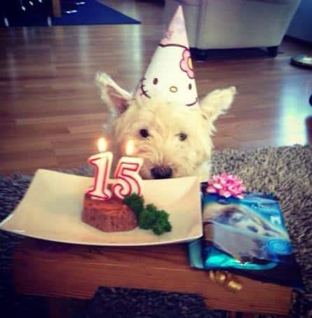 12) “And this is my dog, Woofie, on his 14th birthday!”