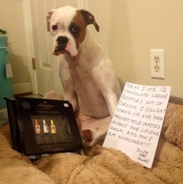 Younger dogs are usually the worst culprits, though here in the selection of 14 ‘mugshots’ we have for you, more than a fair share of dogs should have known better as they ought to have had the wisdom of years on their side. The list of misdemeanors is also a curious one, with ‘victims’ ranging from a pair of false teeth to a shower curtain and escaping under the garden fence to paying an unwelcome visit to people in the shower. There have been a few fatalities in the form of toy characters and one very hungover dog who will likely never eat a chocolate liqueur sweet again, but how do you extricate yourself from a situation where your dog jumps into a stranger’s car and eats their hamburger? Now that sort of incident takes a lot of beating, but only metaphorically speaking. Not one of these dogs gives you the impression they will ever perpetrate another ‘crime’ again as long as they live, except for the one who is prone to paying you a visit when you are in the shower!