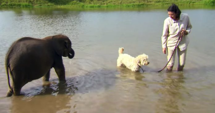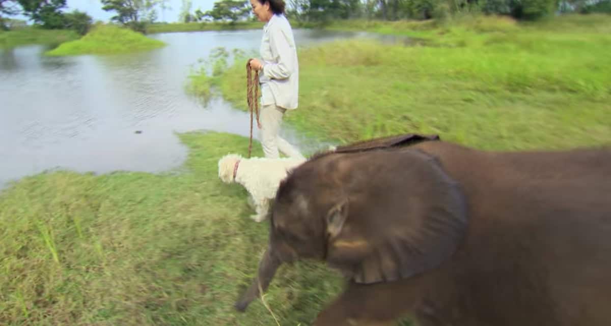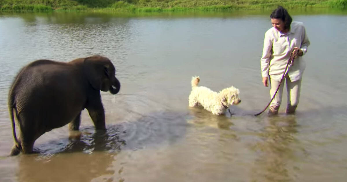 And today, he faces his biggest challenge yet. The woman leads him to the water along with her dog to try and lure him in. But elephants are very smart and remember things clearly, so this would be a process.