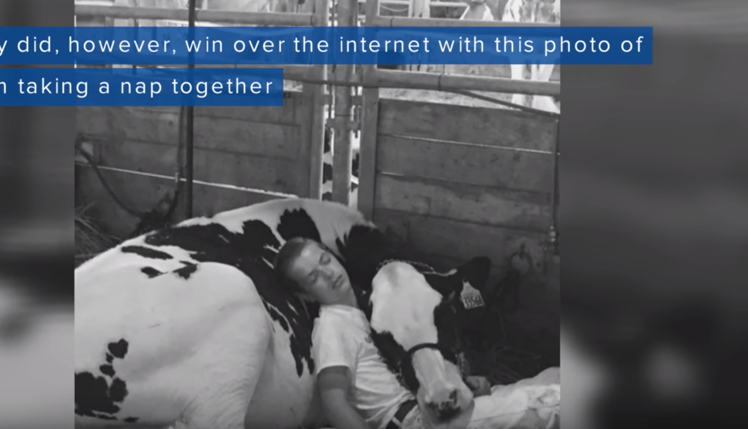 A photo of a teen and his cow has taken the internet by storm and captured the hearts of millions, and you’re about to see why. After placing fifth out of seven total contestants at the Iowa State Fair, 15-year-old Mitchell Miner and his cow, Audri, were exhausted after the long day.