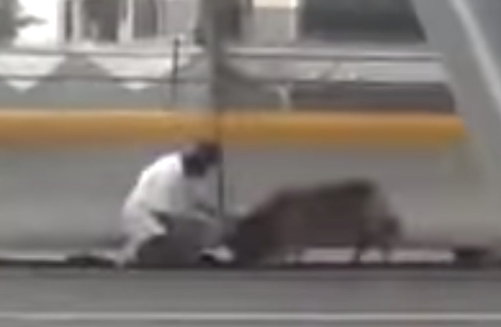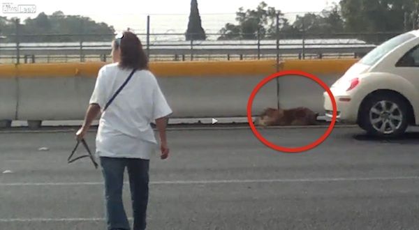A very brave woman saved a dog who had been hit by a car on a highway. The drama unfolded on the hard shoulder of the highway between Mexico City and Pachuca, near the city of Ecatepec, with traffic speeding past on the main artery.