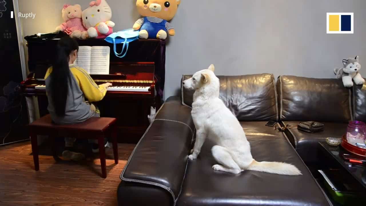 Riceball’s responsibilities are expanding as she’s now learning to supervise her sister’s piano lessons! The girl was 8 years old when Riceball joined the family, and she’s now 11 and the dog is 3 years old. They’ve grown up together and have an amazing bond that allows this to even be possible.