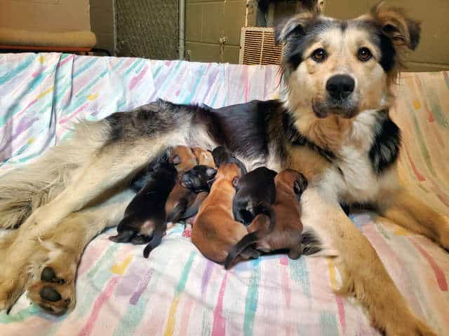 They named the mother Casey, and she’s done everything possible to care for her young ones since arriving at the shelter. As she gets healthier and healthier, she’s able to better provide for them. Casey’s a little hesitant and nervous around the other shelter animals, but she’s very sweet once she warms up to someone. She’s just been through so much in life.