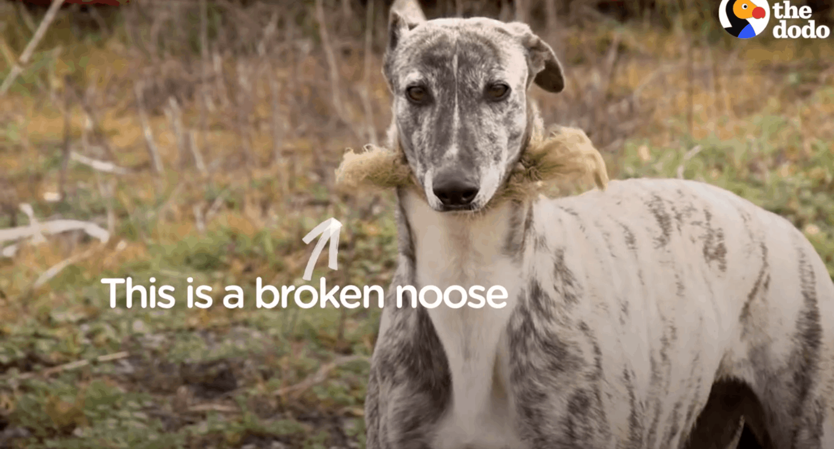 Galgos, or Spanish greyhounds, are often used for breeding and then discarded when their owners no longer need them. But some are killed by hanging. Luckily Valentina’s noose broke, and she was able to be rescued shortly after…