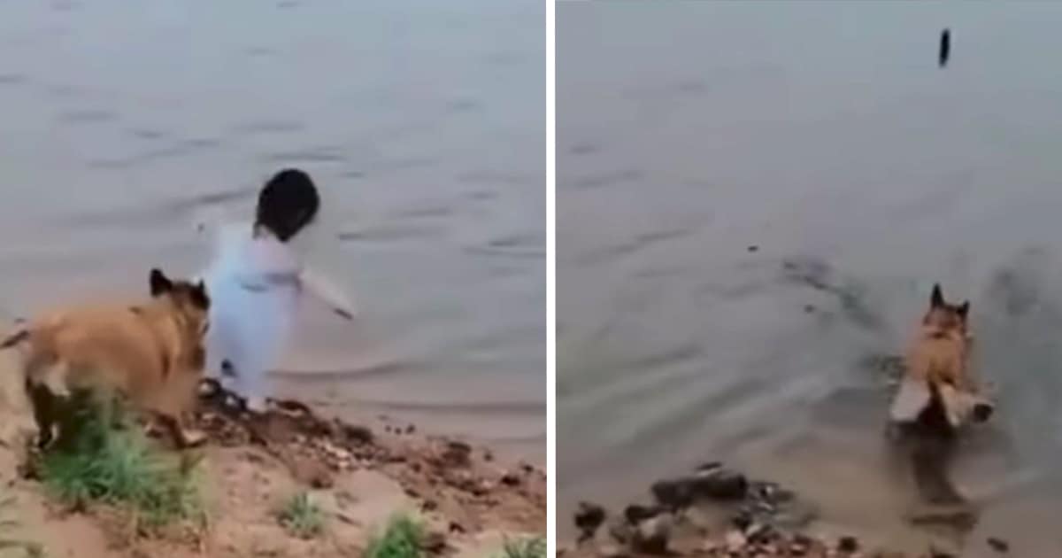 Dog Saves Girl Trying To Retrieve Ball, Goes Into Water To Get It Himself