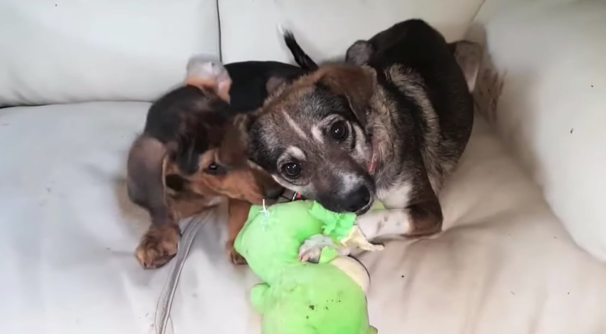 Sunny really broke out of her shell and transformed into a completely different dog. And one year later, she got a forever home! Now Sunny enjoys a soft bed and shares love and friendship with all humans and animals.