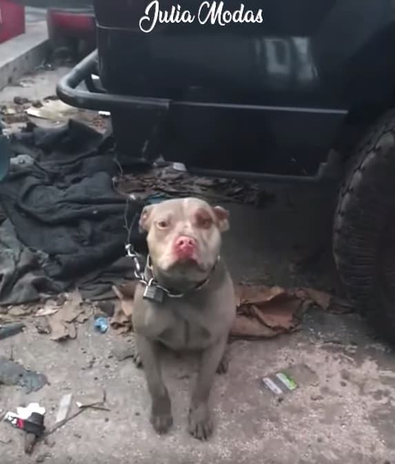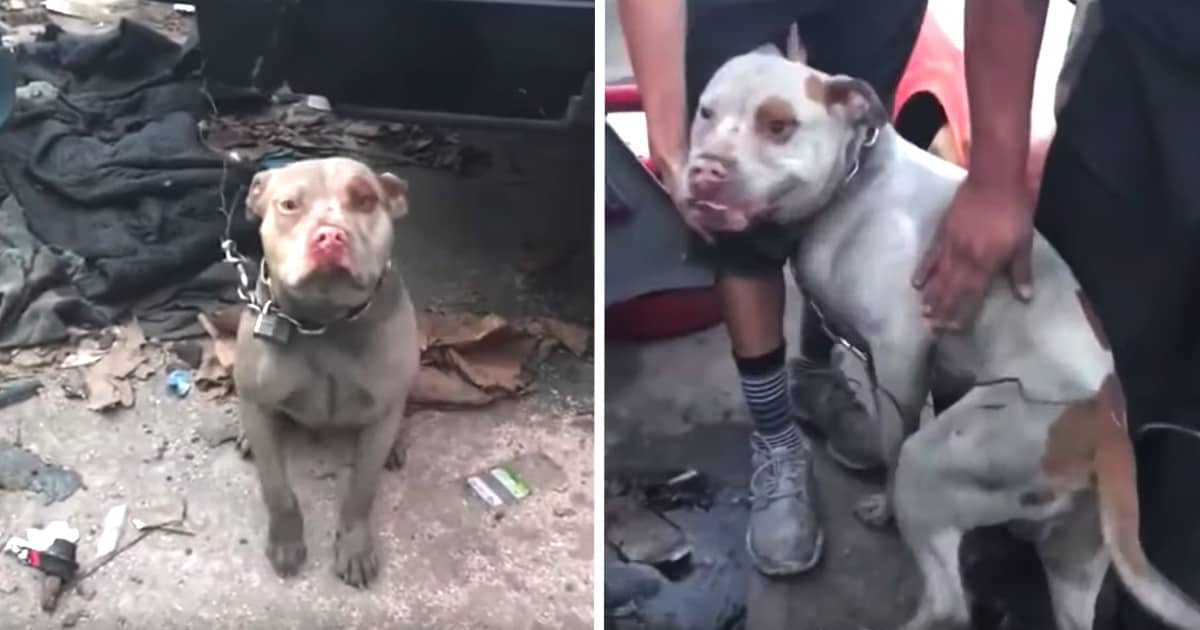 Dog Tied Up On Short, Heavy Chain Was Meant To Guard The Junkyard
