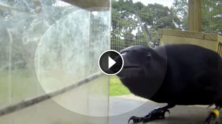 This crow solved a complex problem, one of the hardest for an animal ever, and he did it quickly and effectively, only pausing for a brief moment before figuring out how to move forward. Crows are very smart, with one study concluding them to be equally as intelligent as a 7-year-old human.