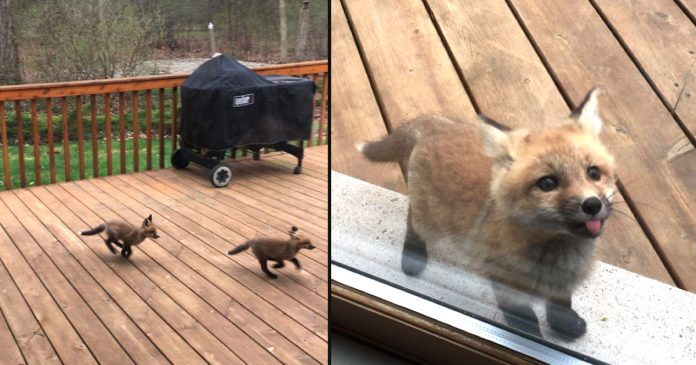It all started when Reddit user “Vechrotex” took a photo of a fox cub at the door of his grandma’s house in Illinois. Fox sightings are pretty common around her house as it sits near a wooded area, but something pretty special was about to happen.