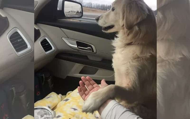 When a frightened dog ended up in a Tennessee shelter after her owner died, the grateful pup insisted on holding hands with her rescuer through the entire 2-and-a-half hour drive to her new foster home.