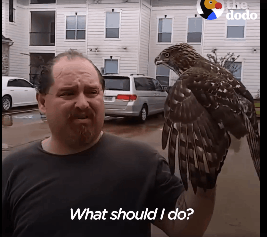 At first the man didn’t know what to do but ended up taking the hawk home to keep him safe until the hurricane passed over.