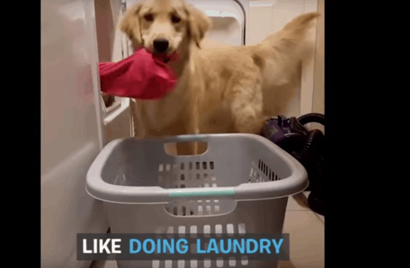 We know the typical ways in which service dogs help their owners, but doing laundry and grabbing water bottles from the fridge? Wow, I had no idea! For being a service dog in-training, Harlow sure seems to have it all down and then some!