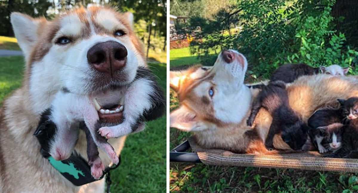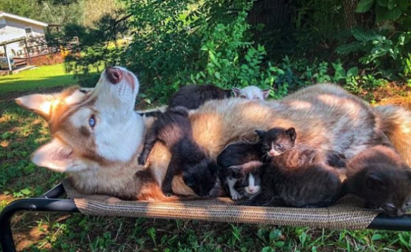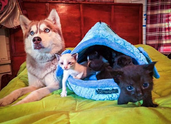 She brought the kittens home to care for them, and Banner was definitely up to help out! The dog acted as their surrogate mother and was extremely gentle and caring with each and every one of them. She constantly watched over them and cuddled with them for naps.