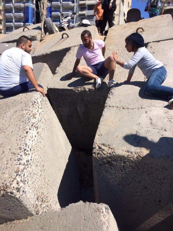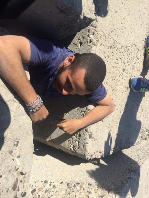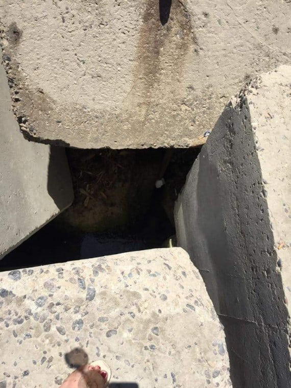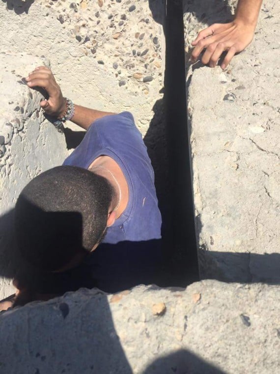 When that didn’t work, they tried to reach the puppy from underneath. But the rocks were too big and heavy to maneuver around.
