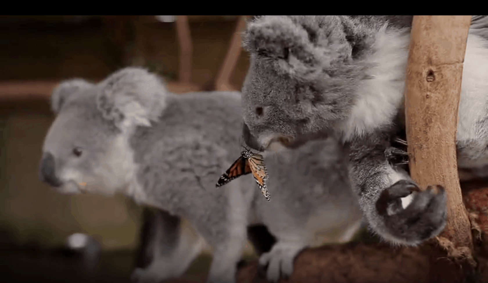 What’s more adorable than a koala photoshoot? A koala photoshoot interrupted by a beautiful butterfly! Watch as Willow the koala joey interacts with her new best friend.