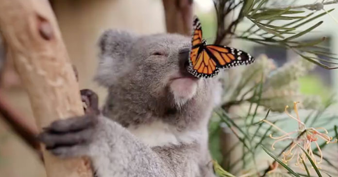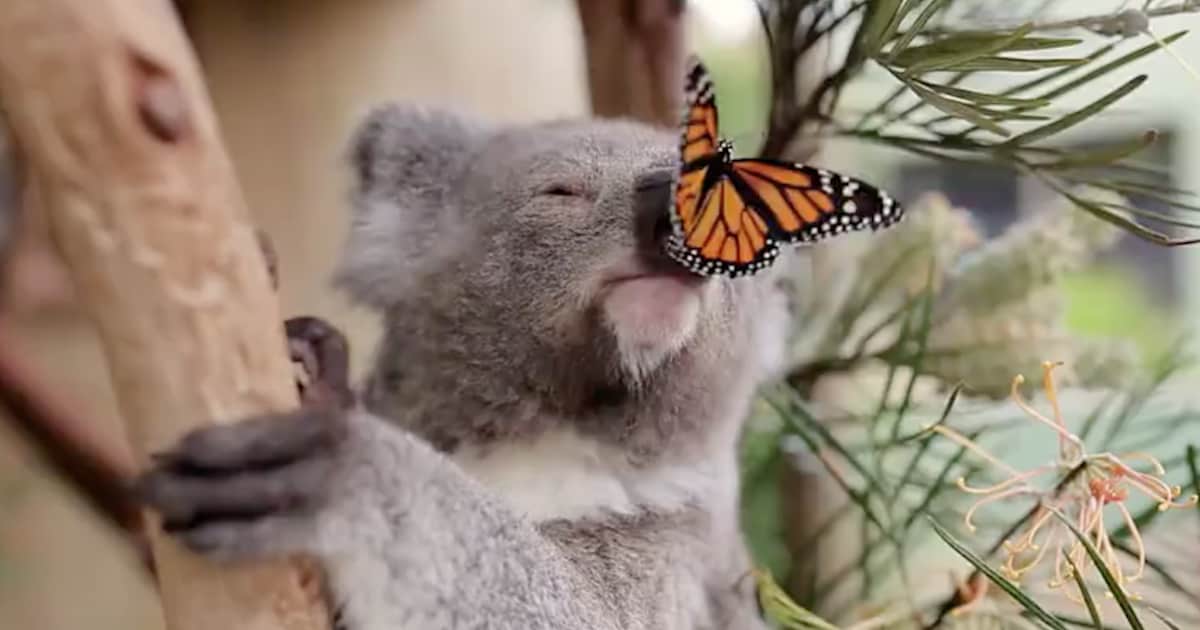 Koala Photoshoot Adorably Interrupted By Friendly Butterfly