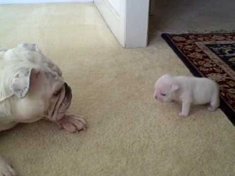 In this adorable video, you are about to see a bulldog mother, Patches, and her bulldog puppy, Elvis who seems to be taking his first steps, and the bulldog puppy’s mother is enjoying watching him doing that. Elvis kept on throwing tantrums and it’s so cute!