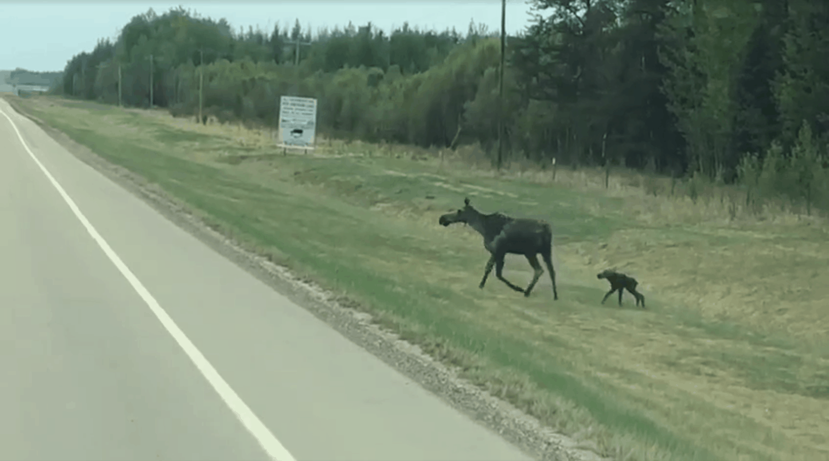 Here was a mama moose taking the time to make sure her newborn wobbly calf was able to safely cross the road. Steve and his wife stopped and watched in awe as they recorded the whole thing. The baby was so small, it must’ve just been born within the past few hours.