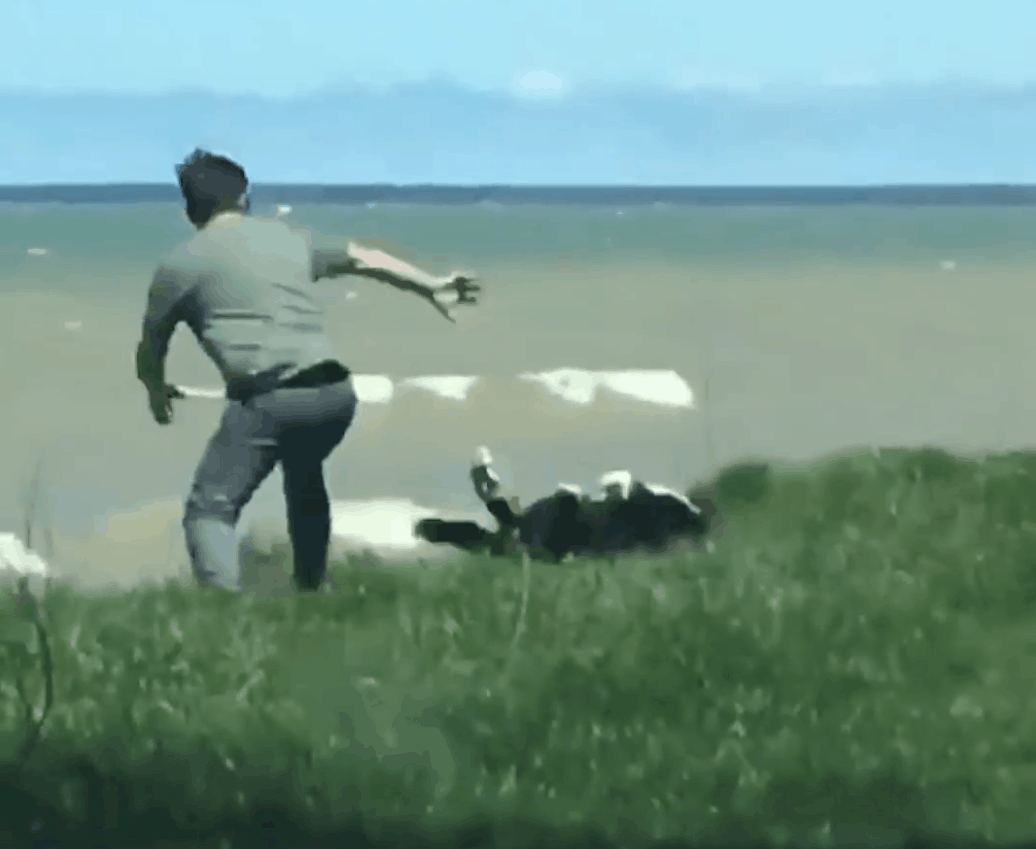 The man’s quick thinking and amazing reflexes saved the dog’s life. You can see the moment he stops in disbelief to gather his thoughts as he can’t believe what just happened.