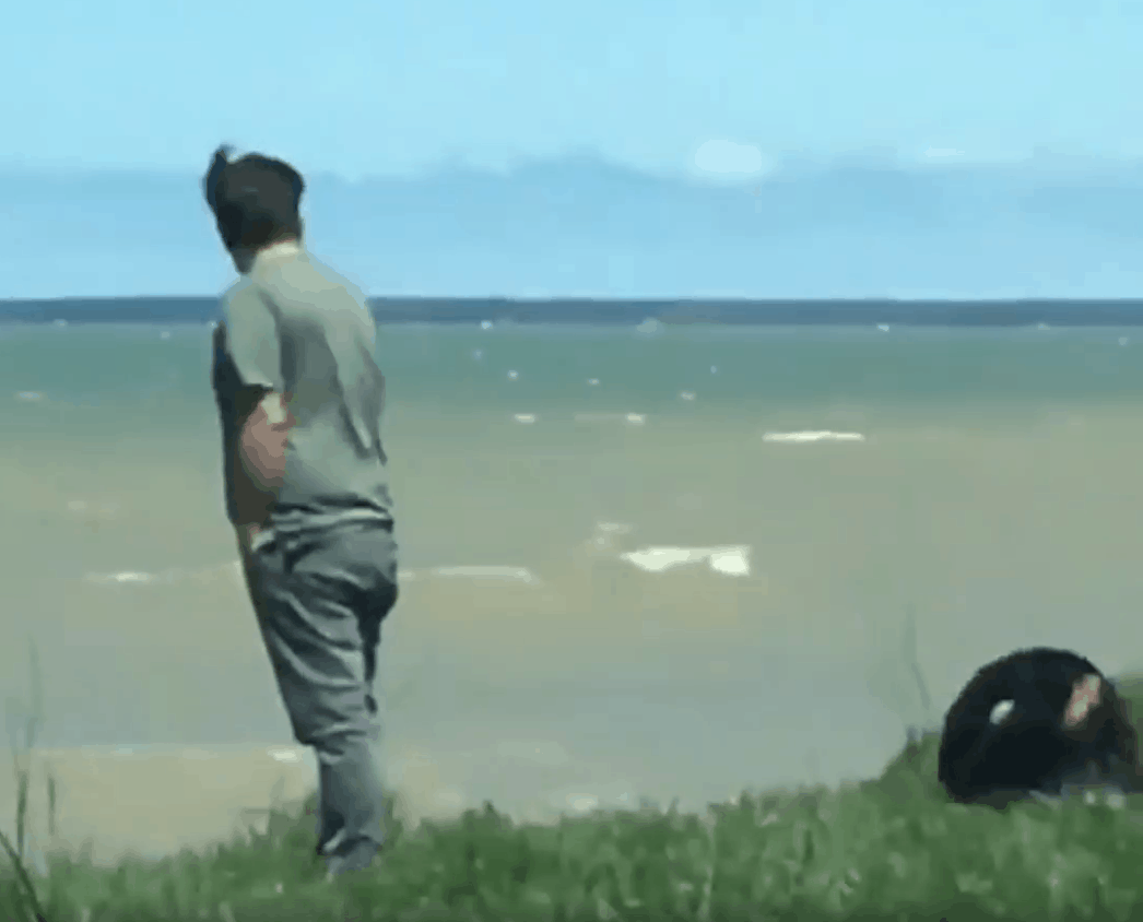 Alfred is walking his dog near the water, but they don’t notice the cliff. That’s when Roxy starts falling over…