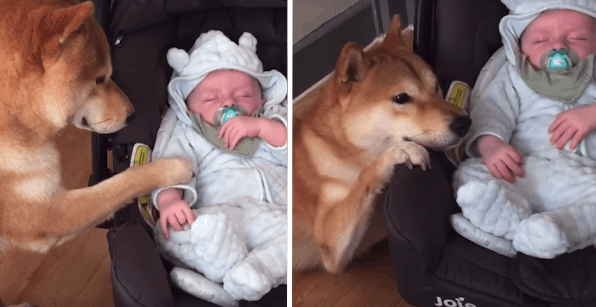 The Shiba Inu was seen being the absolute best babysitter she could be with her new human sibling. Of course, Mom had to record the adorable moment. Thankfully, she decided to share it with the rest of us!