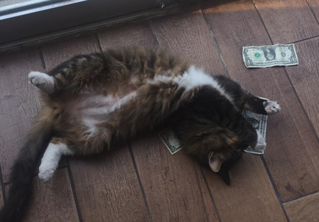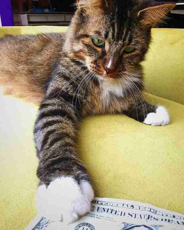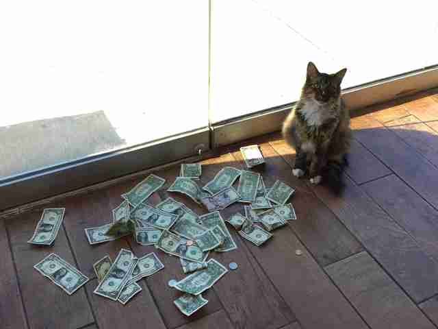 McDaniels expects that, as word gets out, more people will be going out of their way to have their money be snatched by Sir Whines-A-Lot. And the cat will happily take it off their hands: