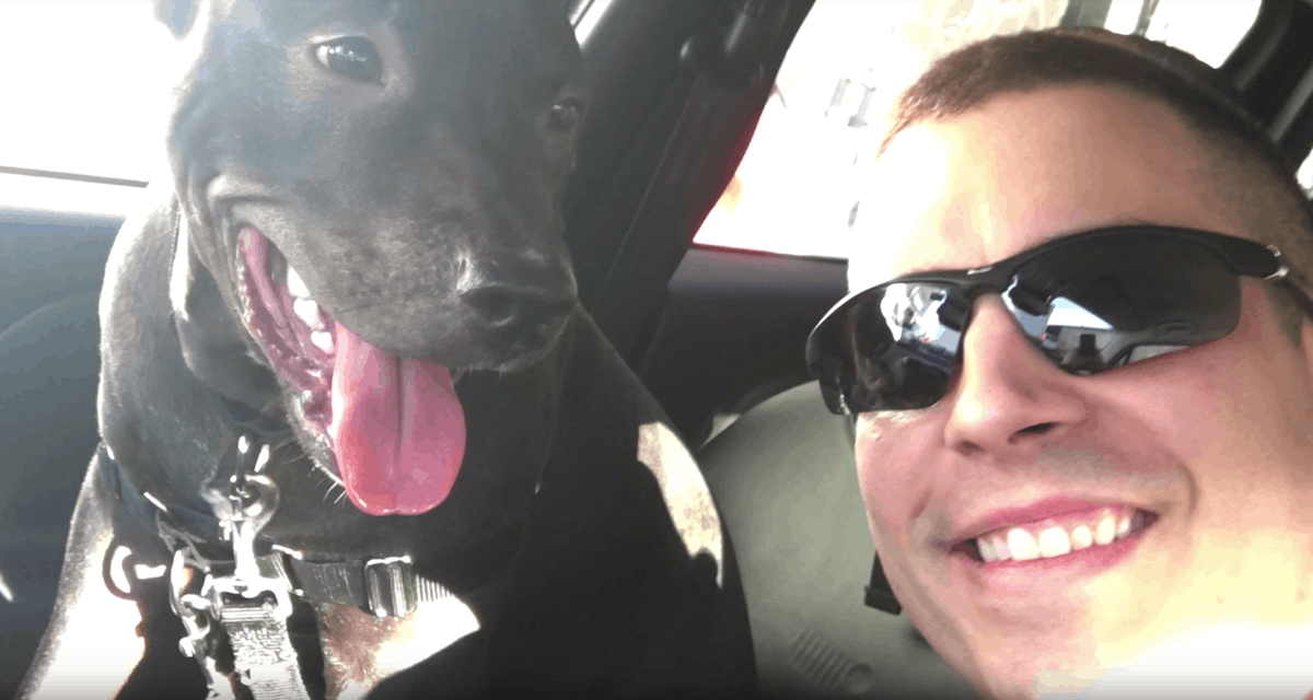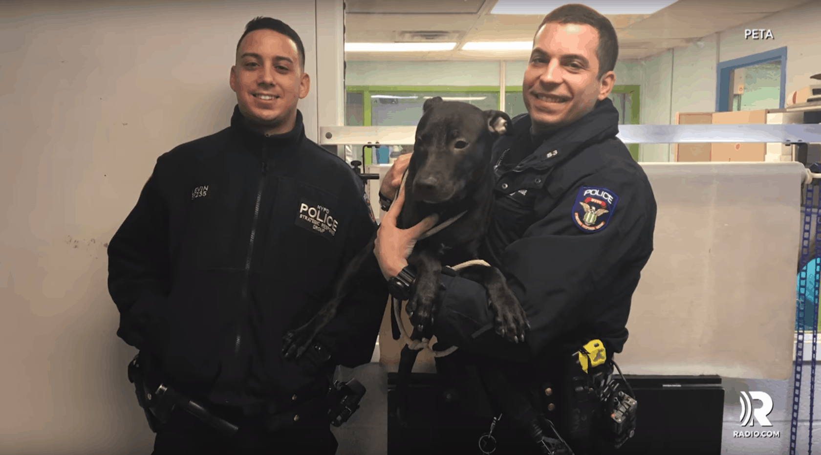 One look in the dog’s eyes and the officer knew he was looking at family.