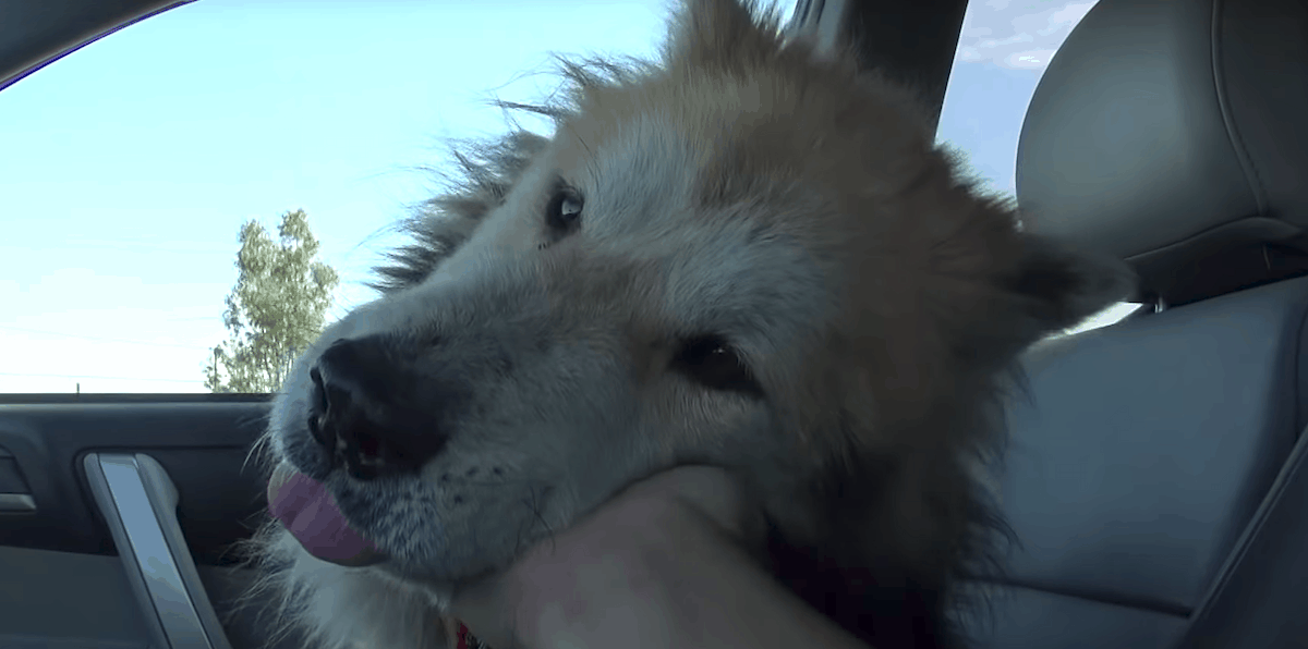 They needed to make the dog feel comfortable in their presence, so they offered food. Rescuers waited and waited, but the dog still wouldn’t let anyone near. After sneaking around behind and capturing him with the gentle snare, Mufasa was finally safe. And how the dog acts in the car after being rescued is just too sweet.
