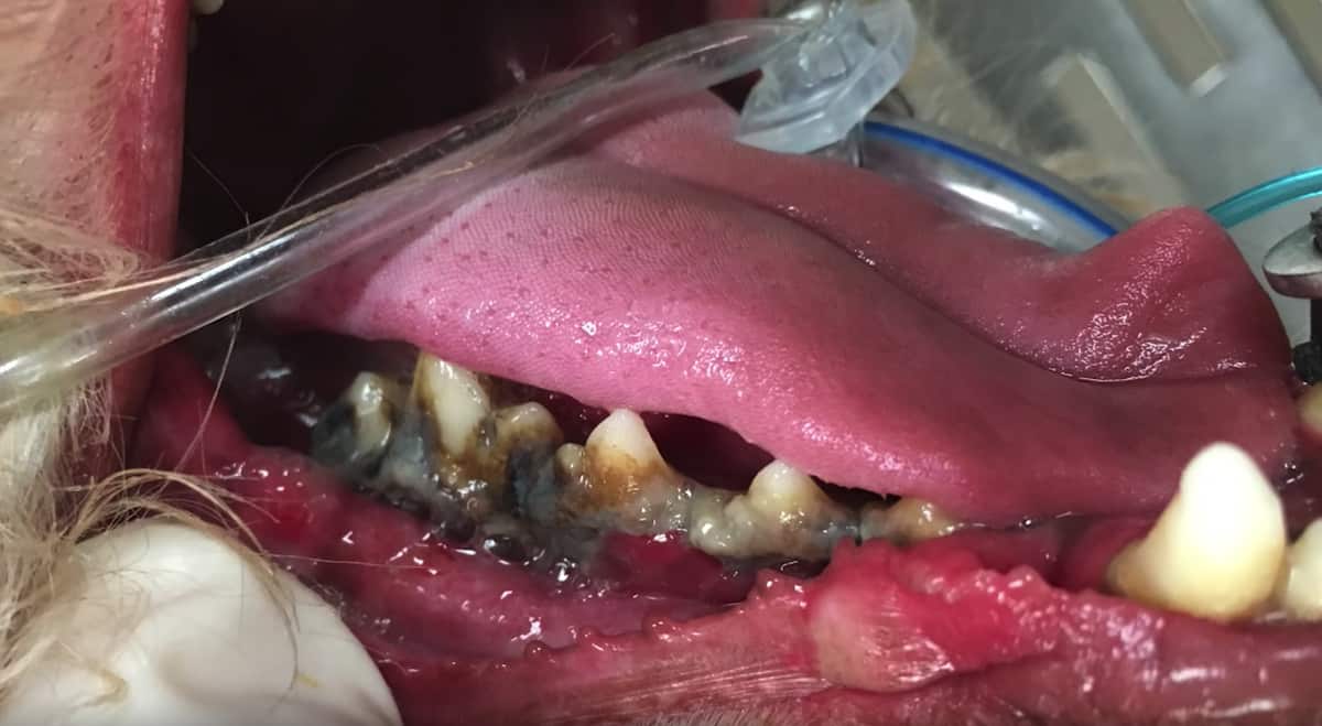 Oso’s teeth were so painful for him, they had to remove 21 of them leaving one single tooth. But the next day, the dog was clearly feeling much better and allowed the staff to actually touch his face. He was now eating and living life without pain.