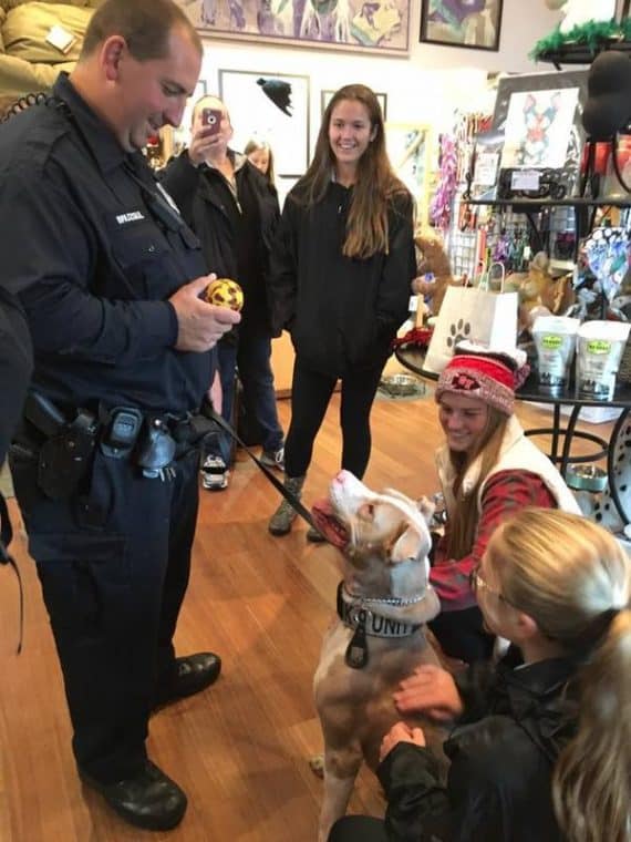The dog is loved by the community and is helping to convince the public that pit bulls are just like any other dog. And they can be police dogs too!