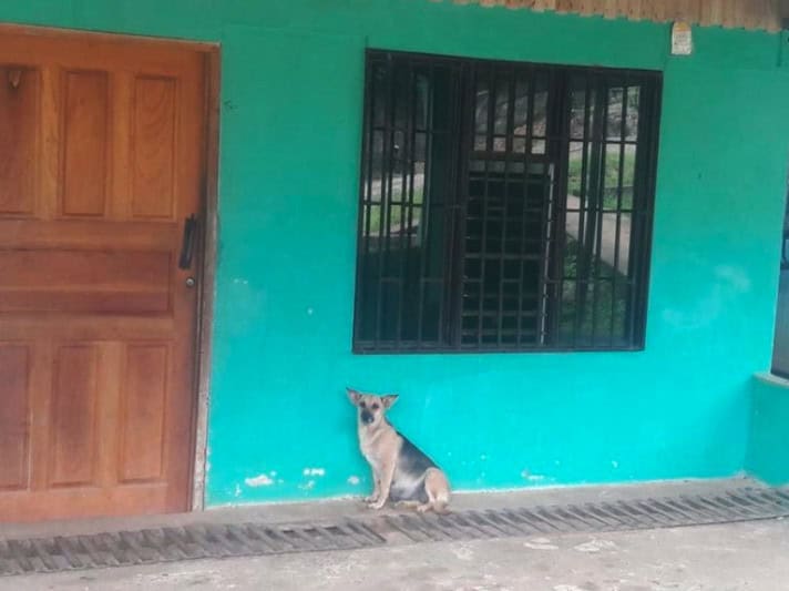 The poor girl had no food or water but sat by the house every day in hopes that she would see her family again. She apparently loved them more than they loved her. So Tania asked a neighbor to take the dog in while she searched for a foster.