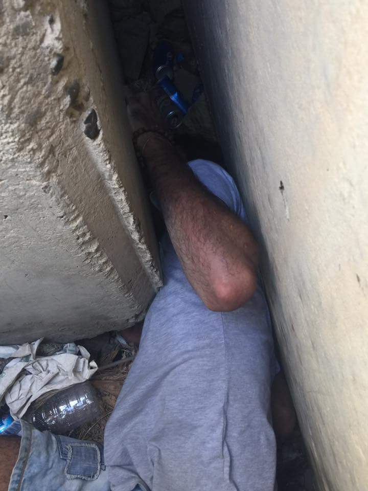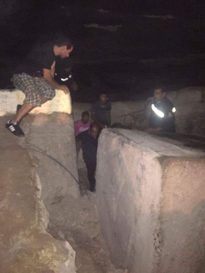 When that didn’t work, they tried to reach the puppy from underneath. But the rocks were too big and heavy to maneuver around.