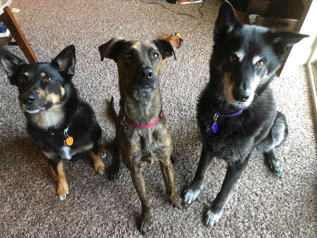 Kairi has bad separation anxiety and has chewed up the carpet when left alone. So they are starting to crate train her, and her favorite toy is going a long way to help out with that. She used to bark and scratch at the crate, but with the dinosaur toy she is silent and calm!