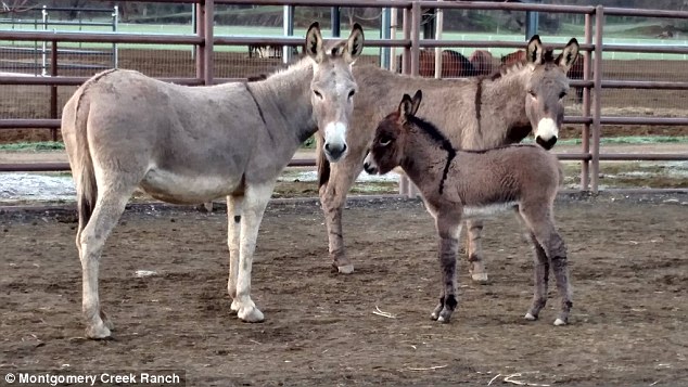 Three of the eight Black Mountain burros brought to Montgomery Creek Ranch are pictured here.