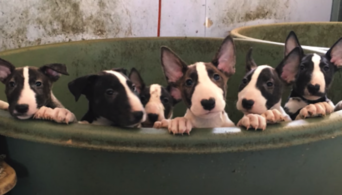 Many of the dogs were forced to live in tiny crates with barely enough room to be able to stretch their heads. The Bull Terriers were mostly in good body condition but neglected in just about every other way imaginable. It was no way for dogs to live.