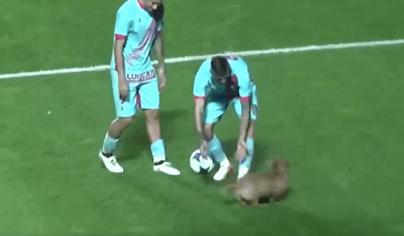 A soccer match between San Lorenzo and Arsenal de Sarandí in Argentina was brought to a halt after about 30 minutes when a random dog ran onto the field and decided to play fetch.