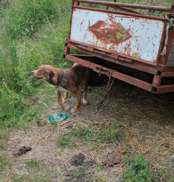 A couple of years ago, someone chained up a dog to a broken-down trailer outside of a Bulgarian village and said that no one should go near him. The person claimed the dog had a contagious disease and left him all alone.