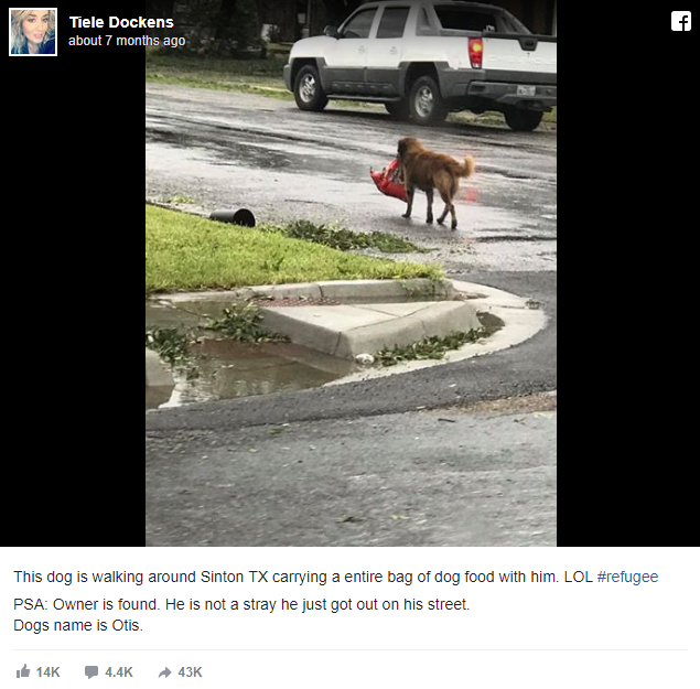 One of the dog’s neighbor’s, Tiele Dockens, spotted Otis walking down her street. When she saw what was in the dog’s mouth, she couldn’t believe her eyes!