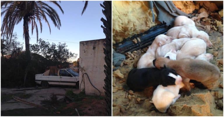 Vera was in terrible shape overall. Not only did she have a broken leg, but she was starving and extremely emaciated. A woman named Lianne and her friend and veterinarian Ellen Sobry stumbled upon the dog near a market in Spain and noticed she was lactating. She must’ve had puppies somewhere, but where?