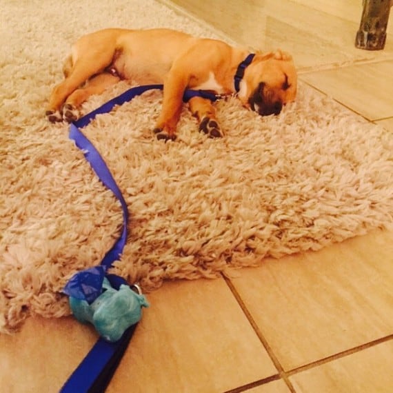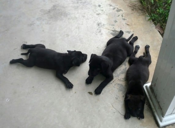 And you thought you were tired after a long weekend. These puppies are extremely exhausted and don’t plan on moving for the next few hours or so!