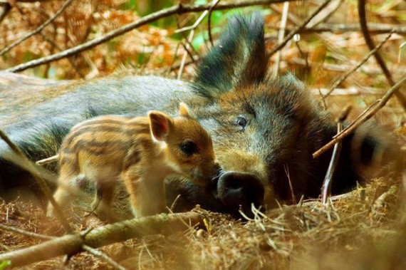26) Baby boar and mommy.
