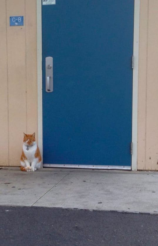 When Bubba is ready to leave, he simply meows near the door until it is opened.