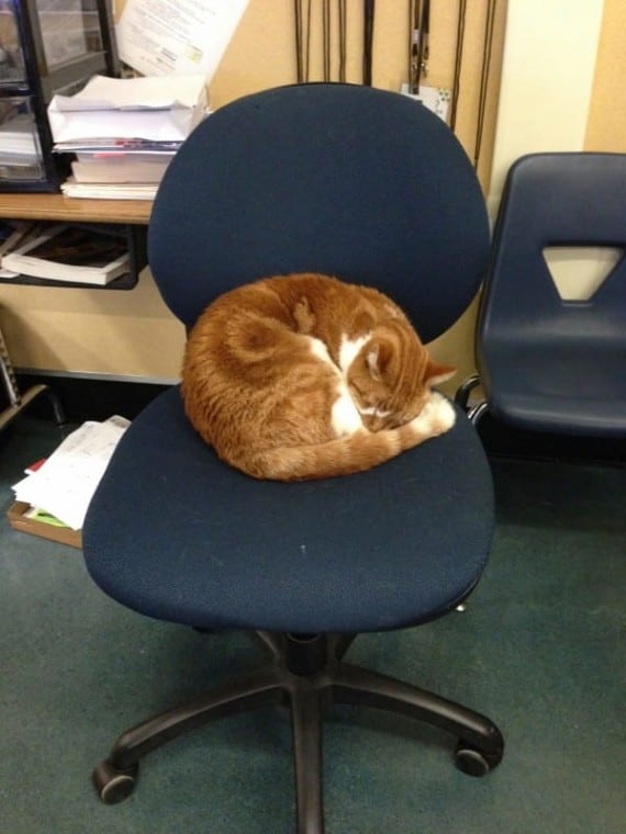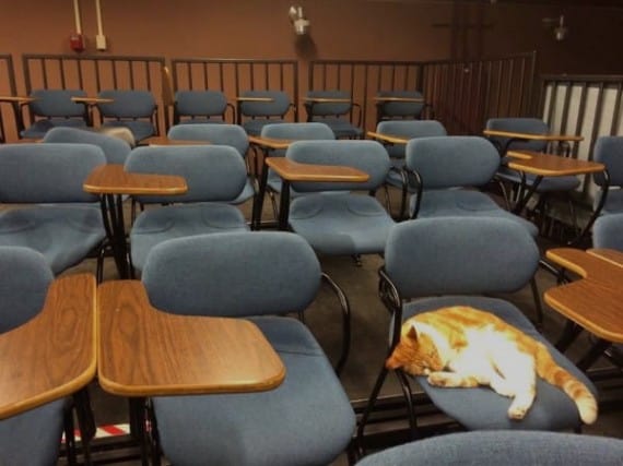 He wanders the halls and visits classrooms and has basically become the school mascot.