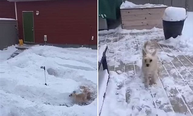 It’s certainly a creative way to take the dog out when you can’t get to the snow-covered dog park!