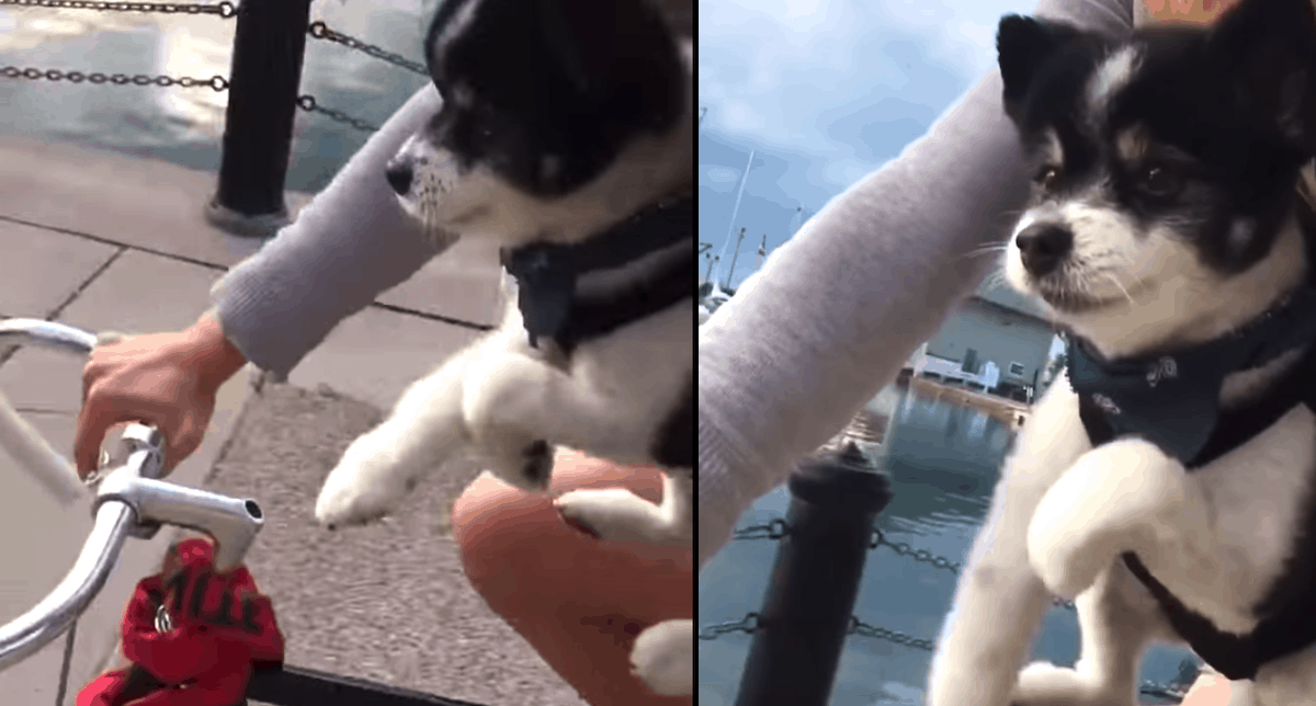 Tiny Pup Goes On Bike Ride With Mom, Does His Best To ‘Help Out’