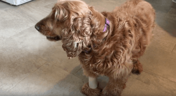 Then it’s on to the other pets. The dog tries to pull a fast one on dad and act like his leg is broken. The empty toilet paper tube almost fooled him! It doesn’t seem like the dog is too excited to get to work either.