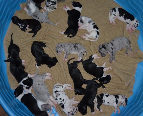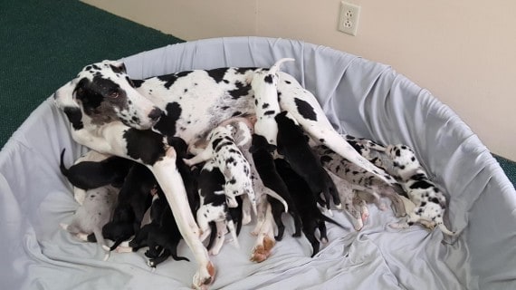 The puppies just kept coming at a pace of about one per hour making this a 19-hour birthing process.