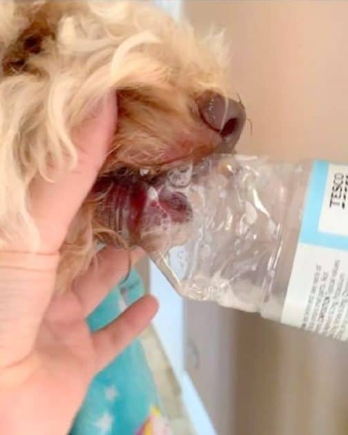 Bodhi was crying out and doing everything he could to remove the bottle, but it wouldn’t budge. Boh tried to help, but the bottle had created a suction. So she took her dog to the emergency clinic in a hurry.